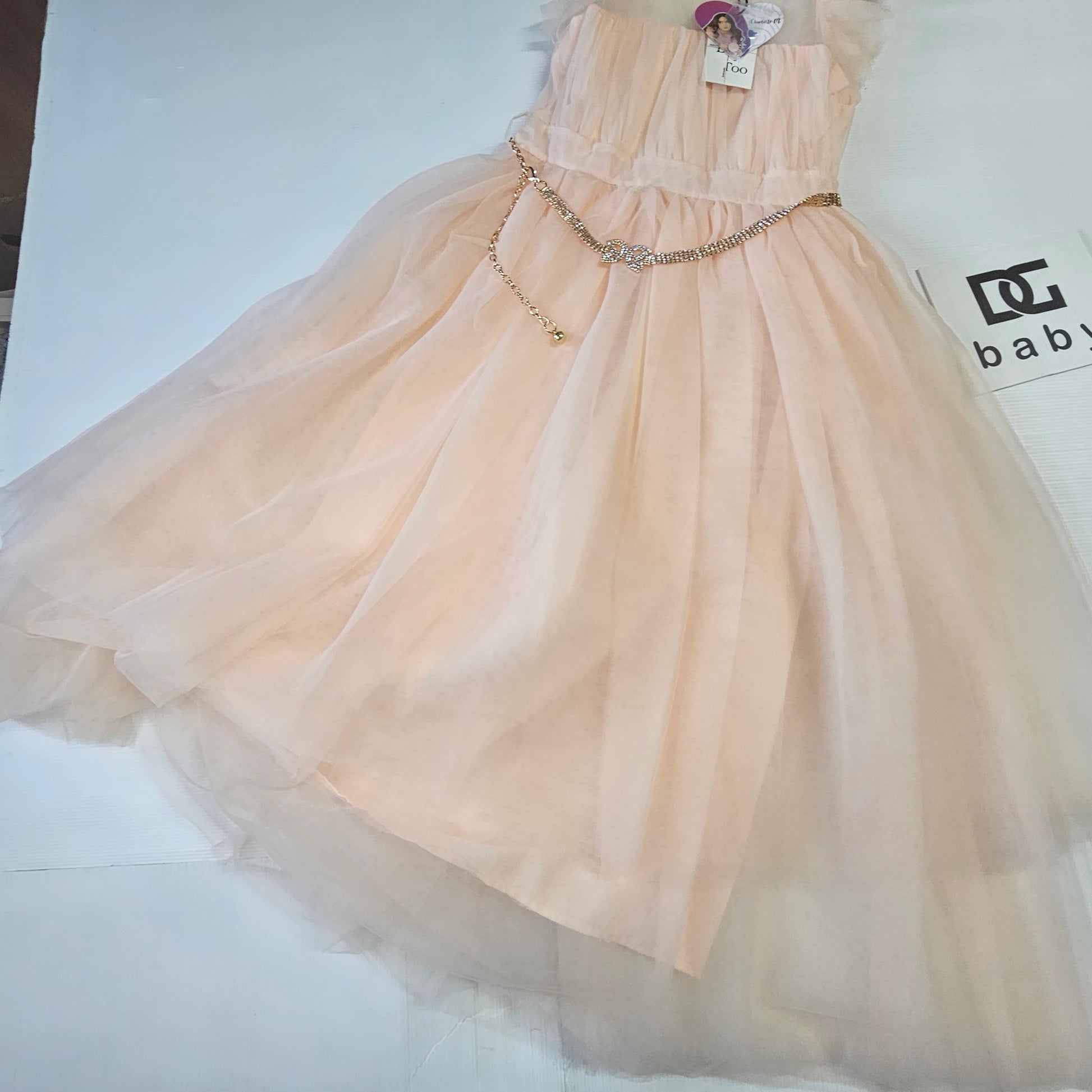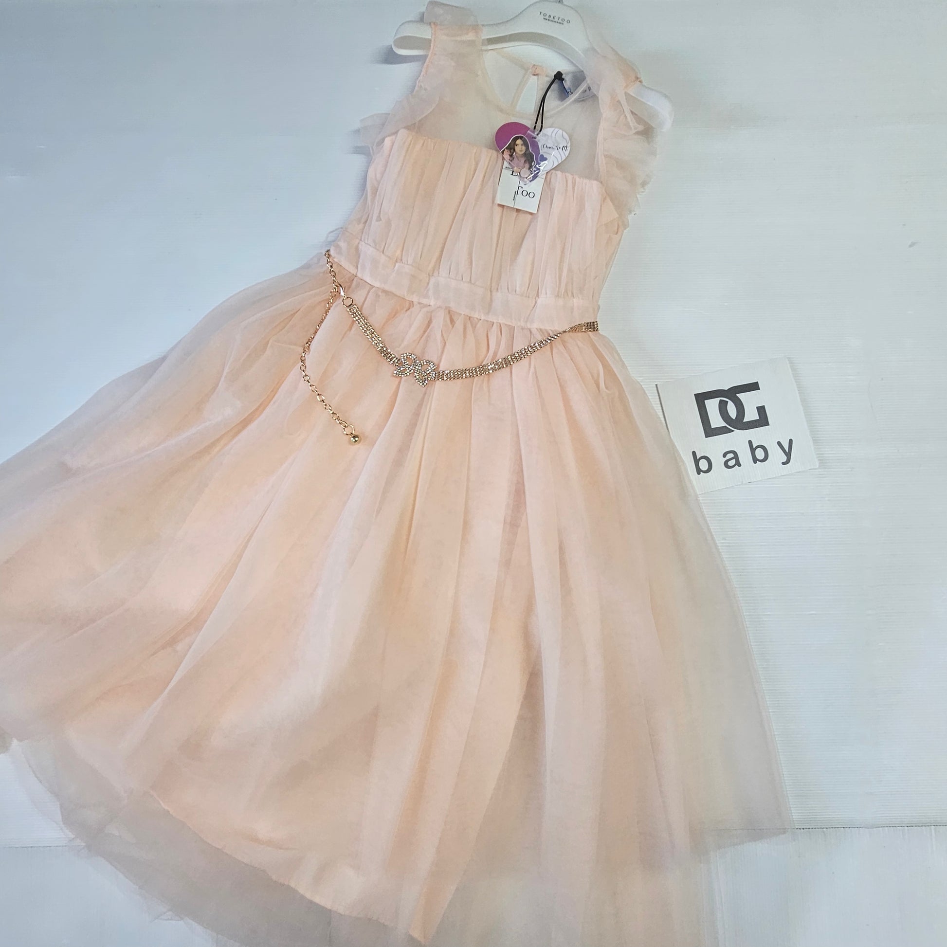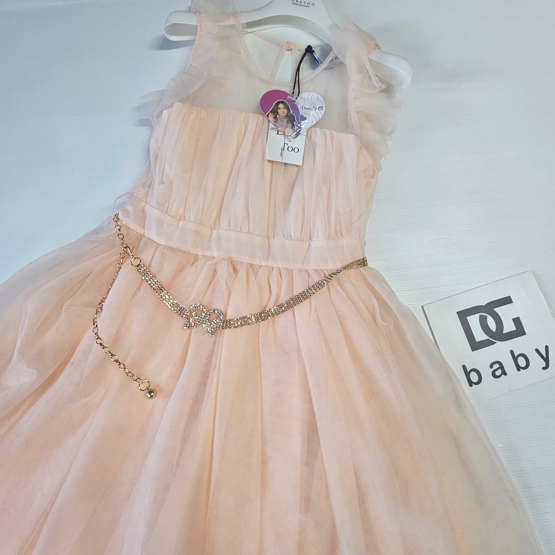 vestitino ragazza TOO BE TOO con corpino e gonnellone con balze di tulle e una cintura gioiello