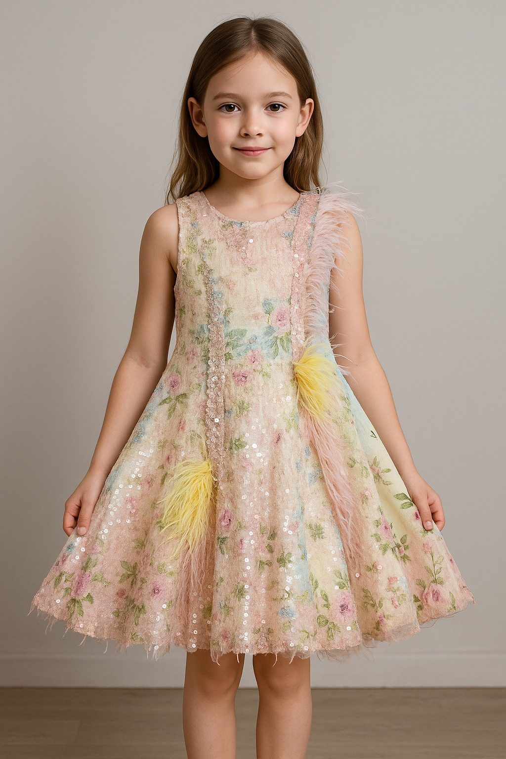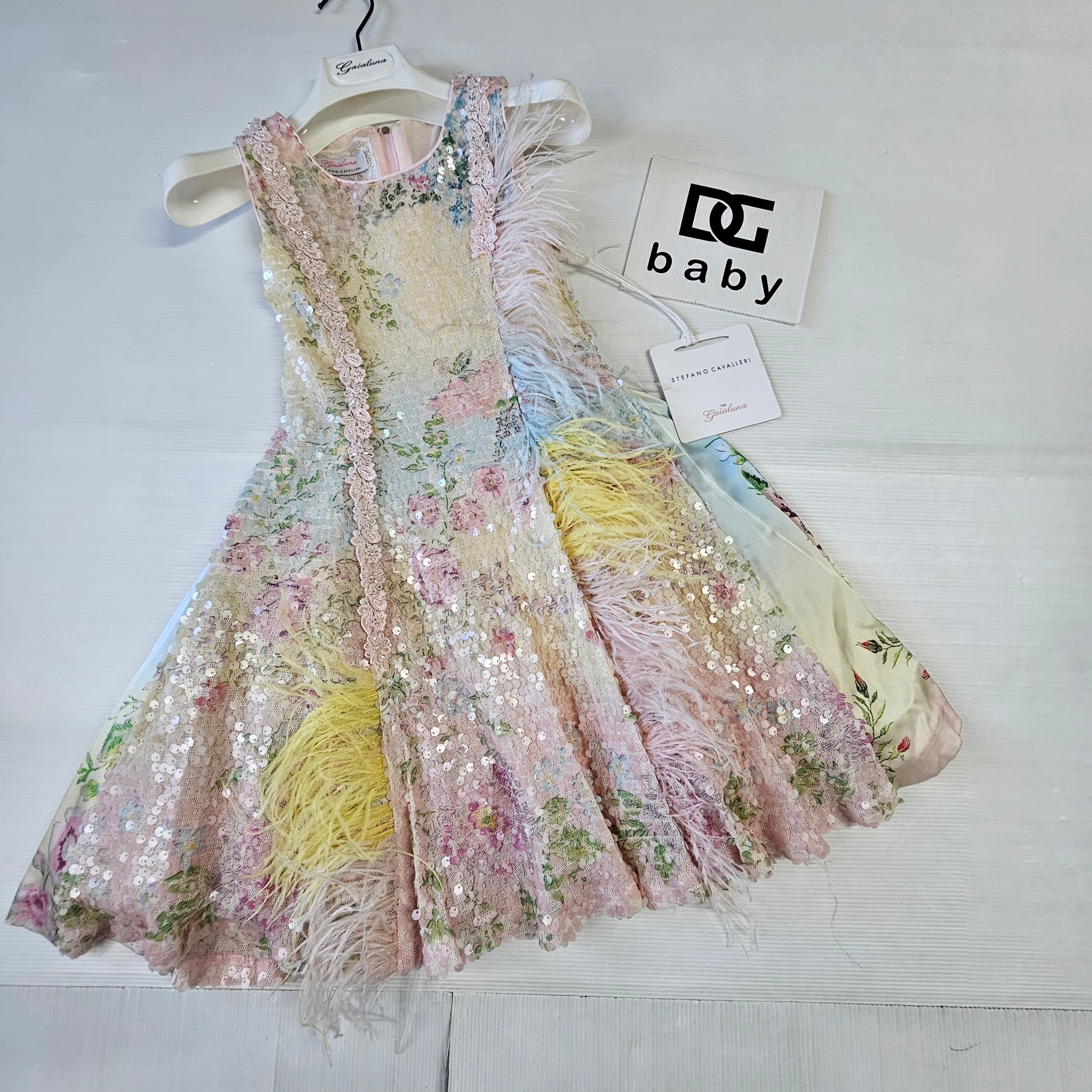 vestitino ragazza G1271 STEFANO CAVALLIERI fantasia con piume e pailettes