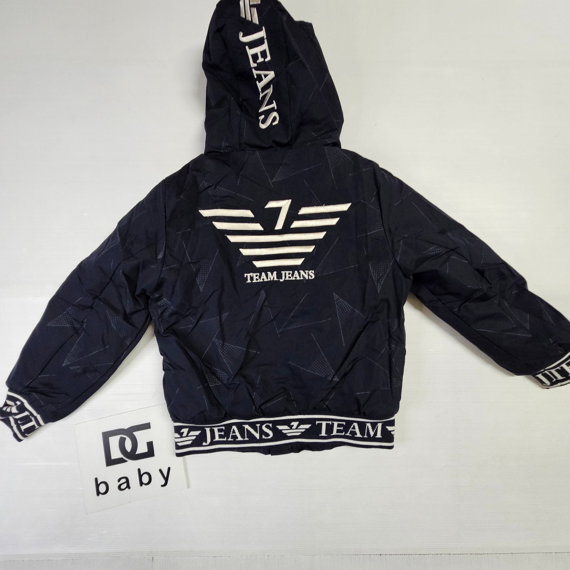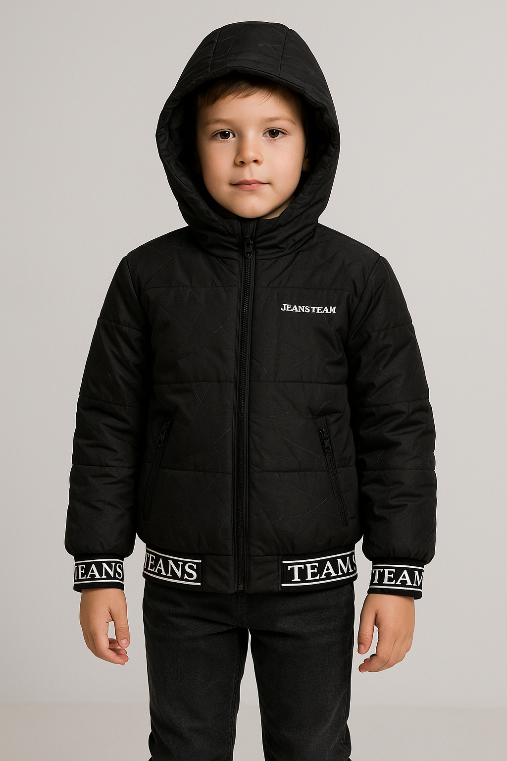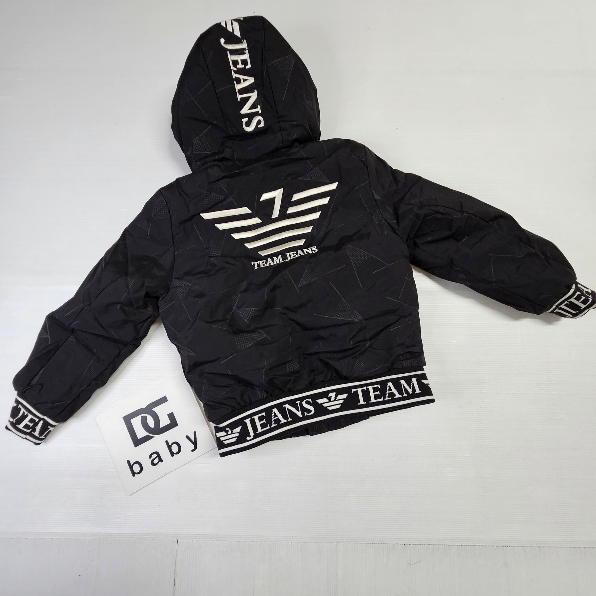 Giubbotto ragazzo (8–16 anni) in tessuto tecnico nero con stampe e inserti logo sul retro e cappuccio. Modello imbottito, chiusura con zip, polsini e fondo con elastico logato per una vestibilità sportiva e moderna. Caldo, comodo e perfetto per uno stile urban.