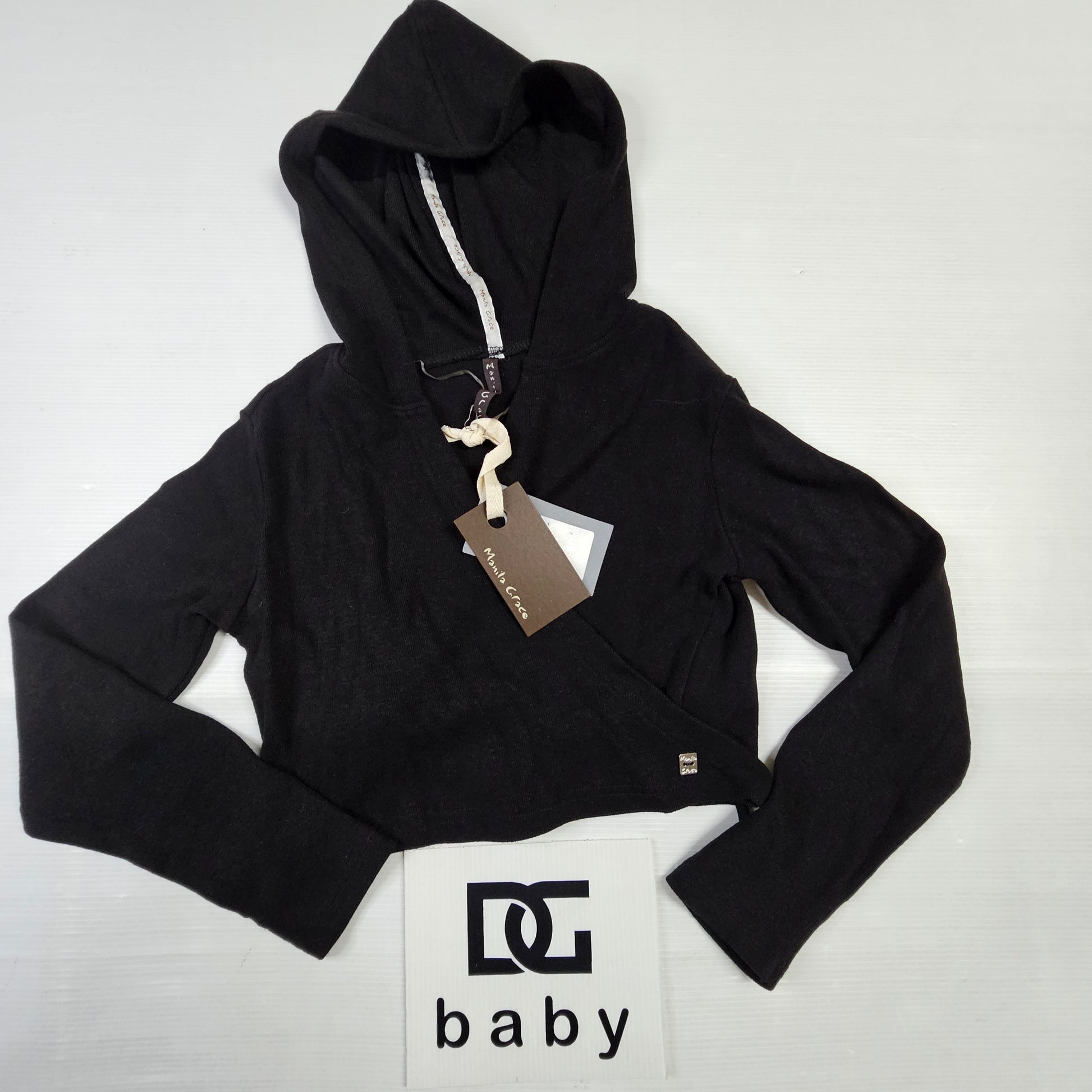 Elegante maglia MANILA GRACE in lana rasata da ragazza, con cappuccio e taglio incrociato sul davanti.