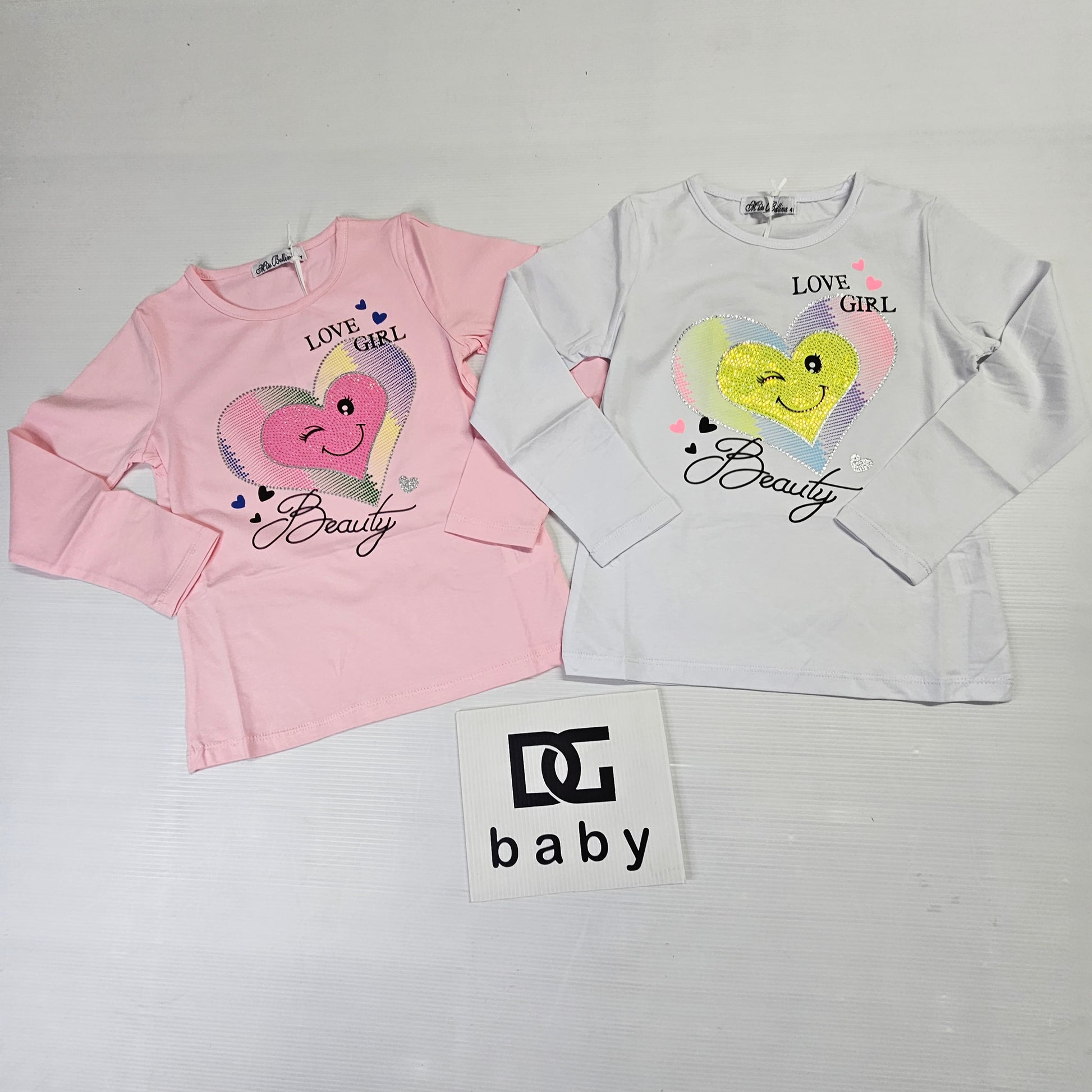 maglietta bambina ragazza LOVE GIRL manica lunga in cotone