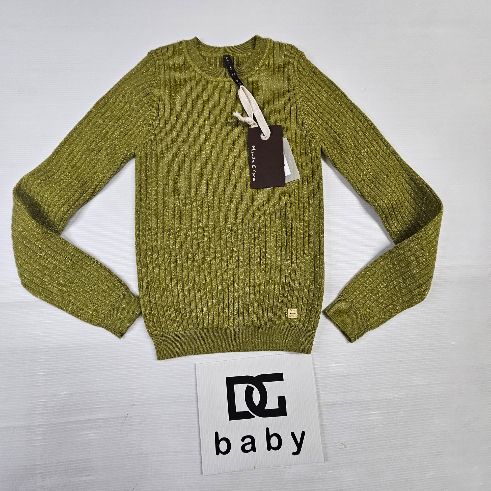 Raffinato maglioncino da ragazza a costine sottili, con filo lamé brillante che dona un tocco di luce al look quotidiano.