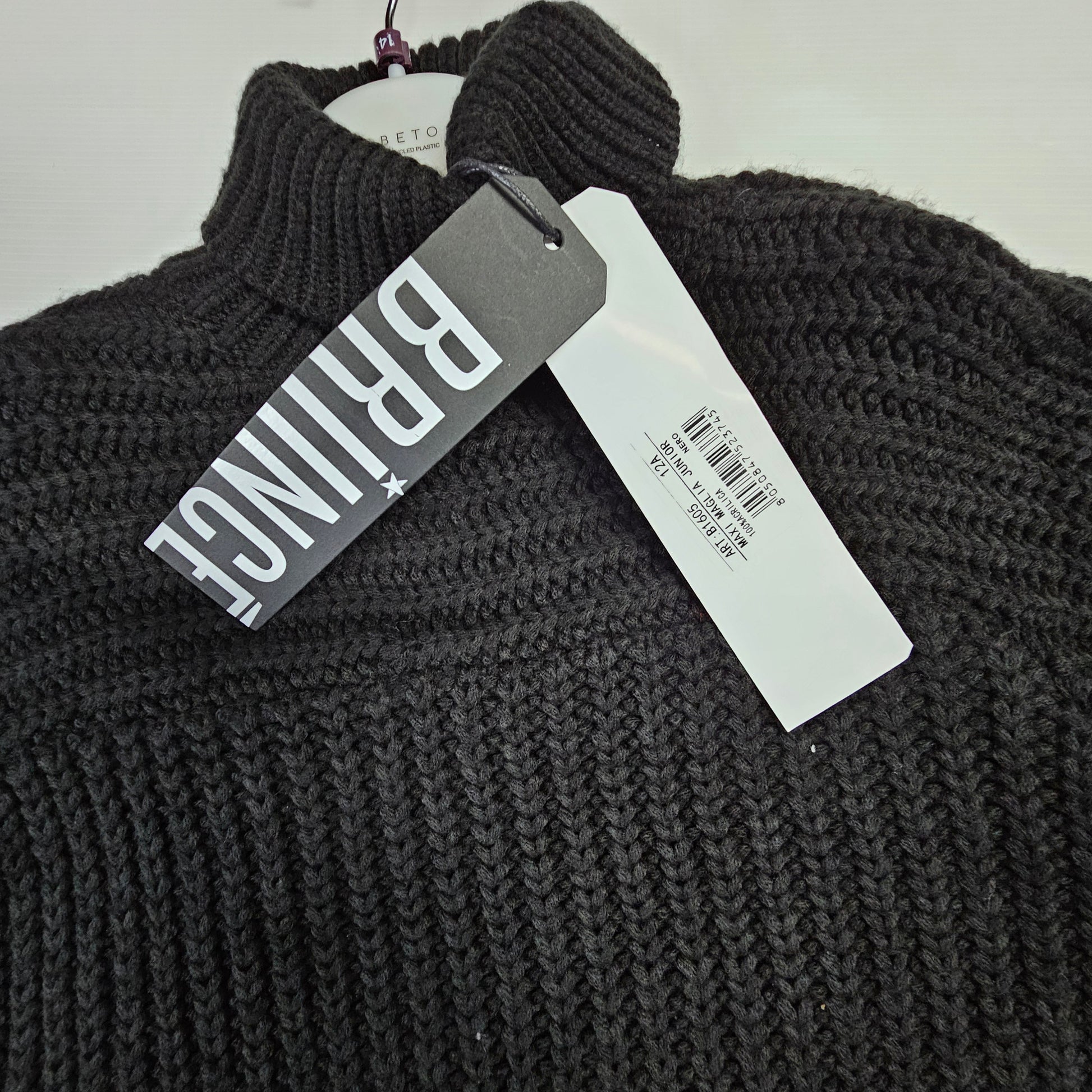 Caldo maximaglia a collo alto in maglia grossa, colore nero. Morbido e confortevole, perfetto per le giornate fredde. Stile semplice e versatile, ideale per un look casual ma curato.