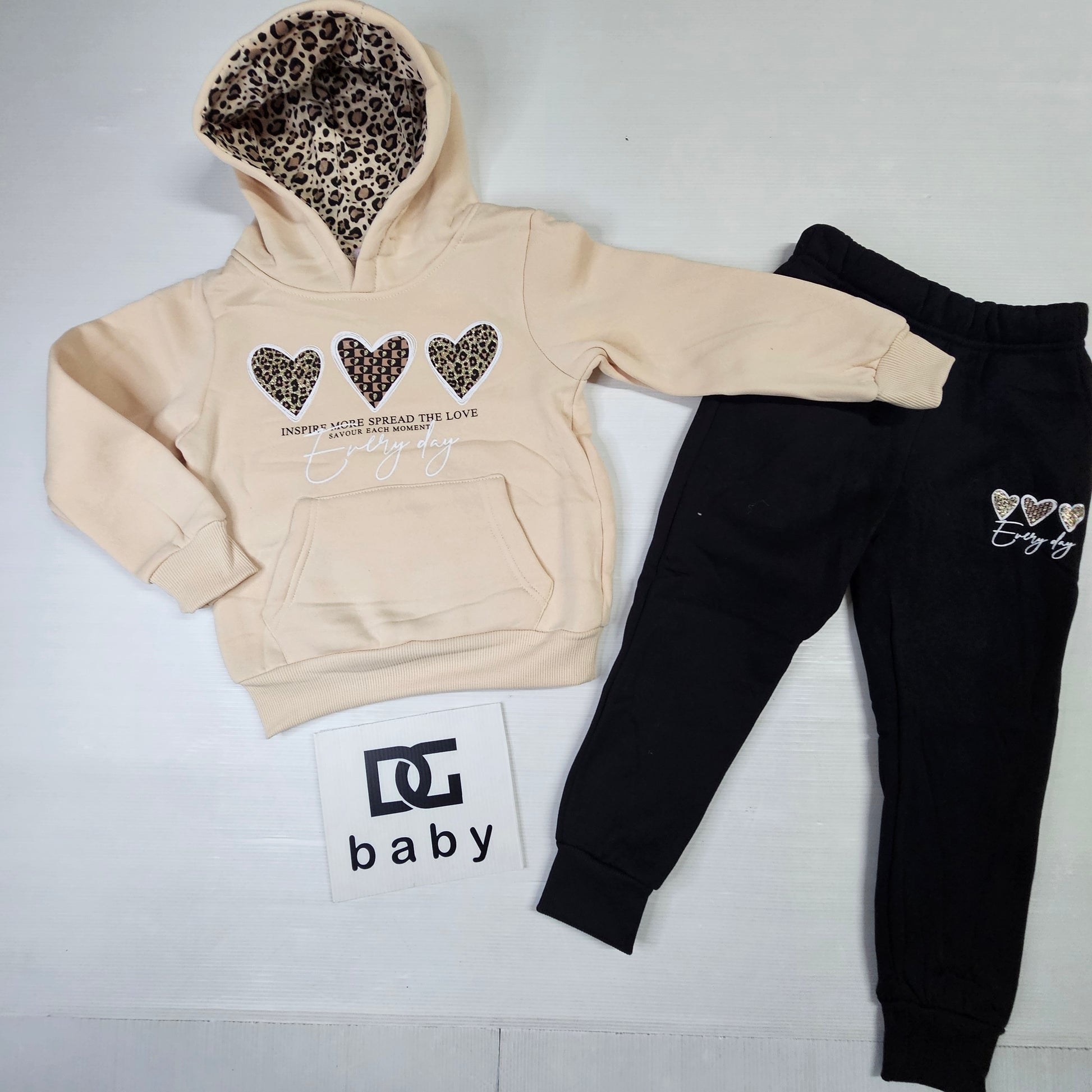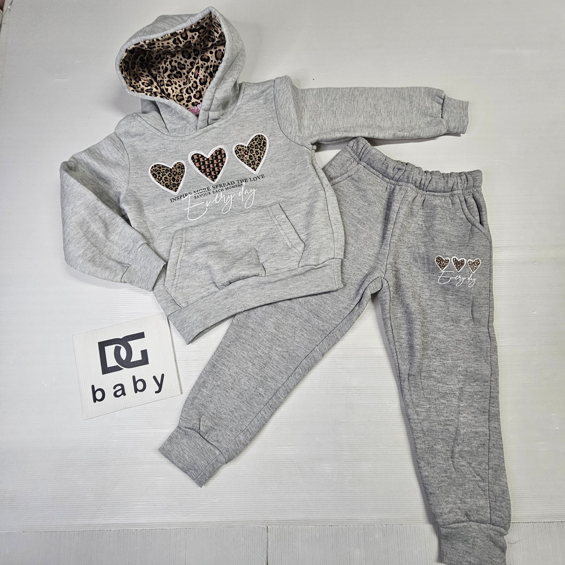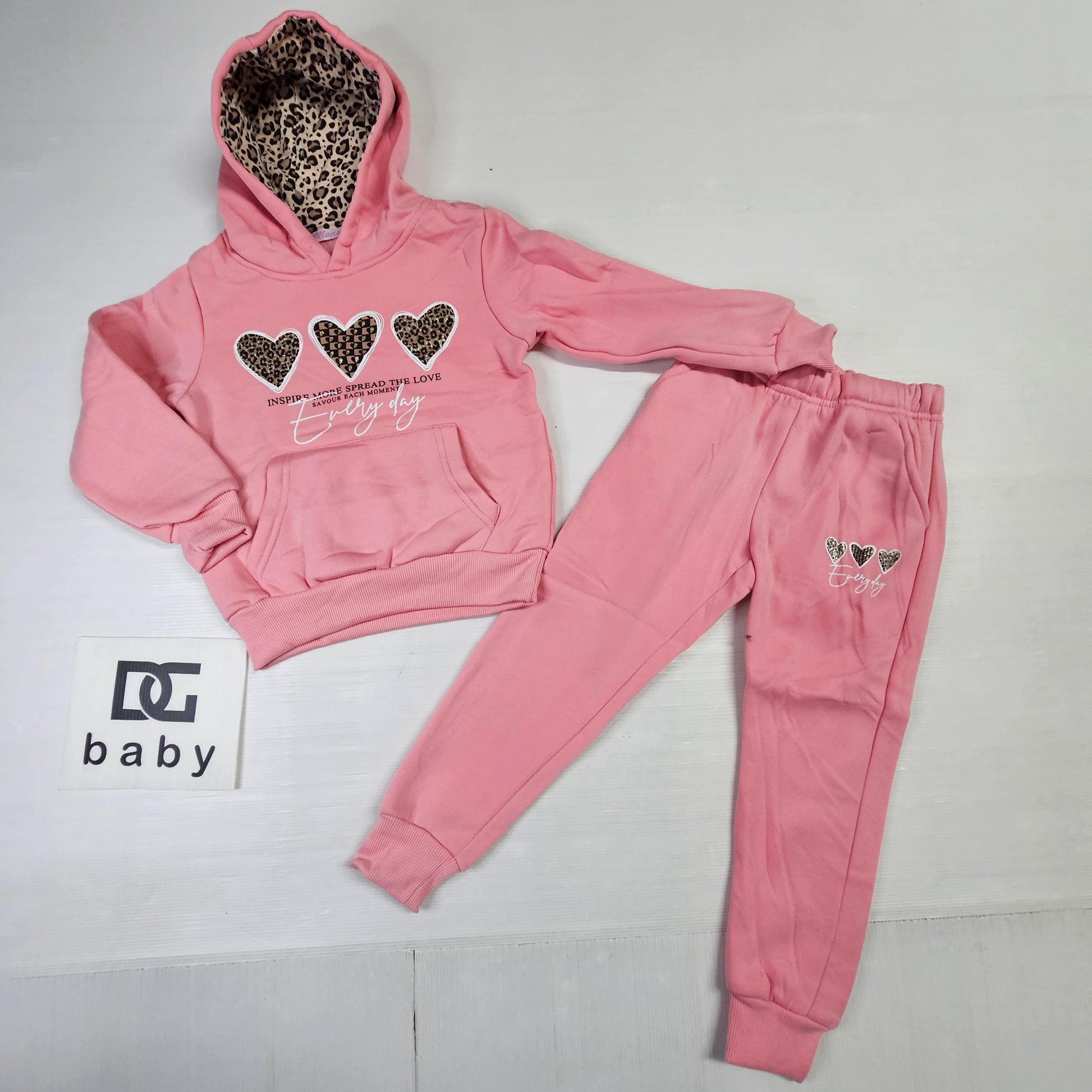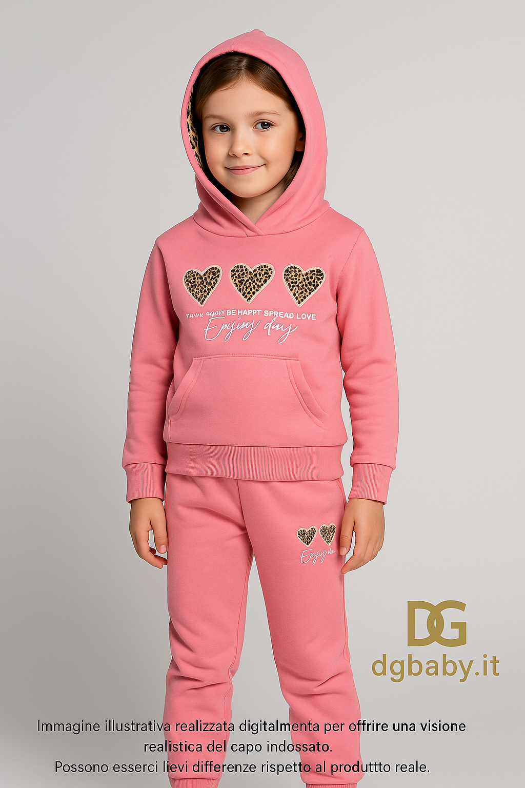 tuta bambina ragazza CUORI EVERY composta da maglia con cappuccio e pantatuta tutto felpato