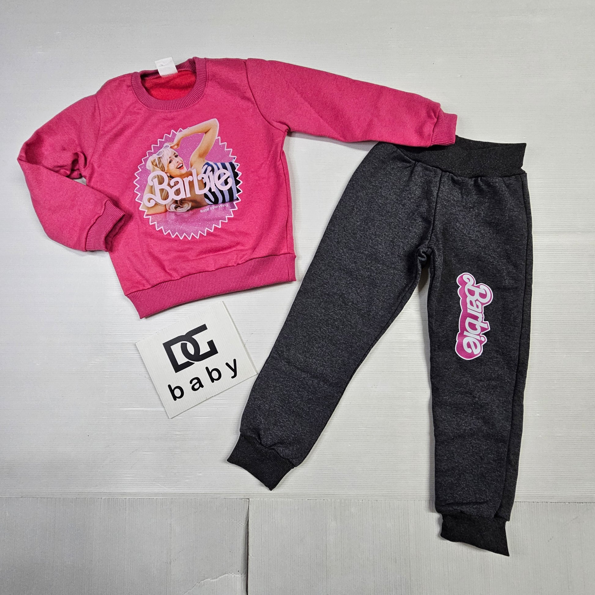 Tuta in caldo cotone composta da felpa con stampa BARBIE LOVE e pantalone abbinato con polsini elasticizzati. Morbida calda, comoda e perfetta per le giornate casual.