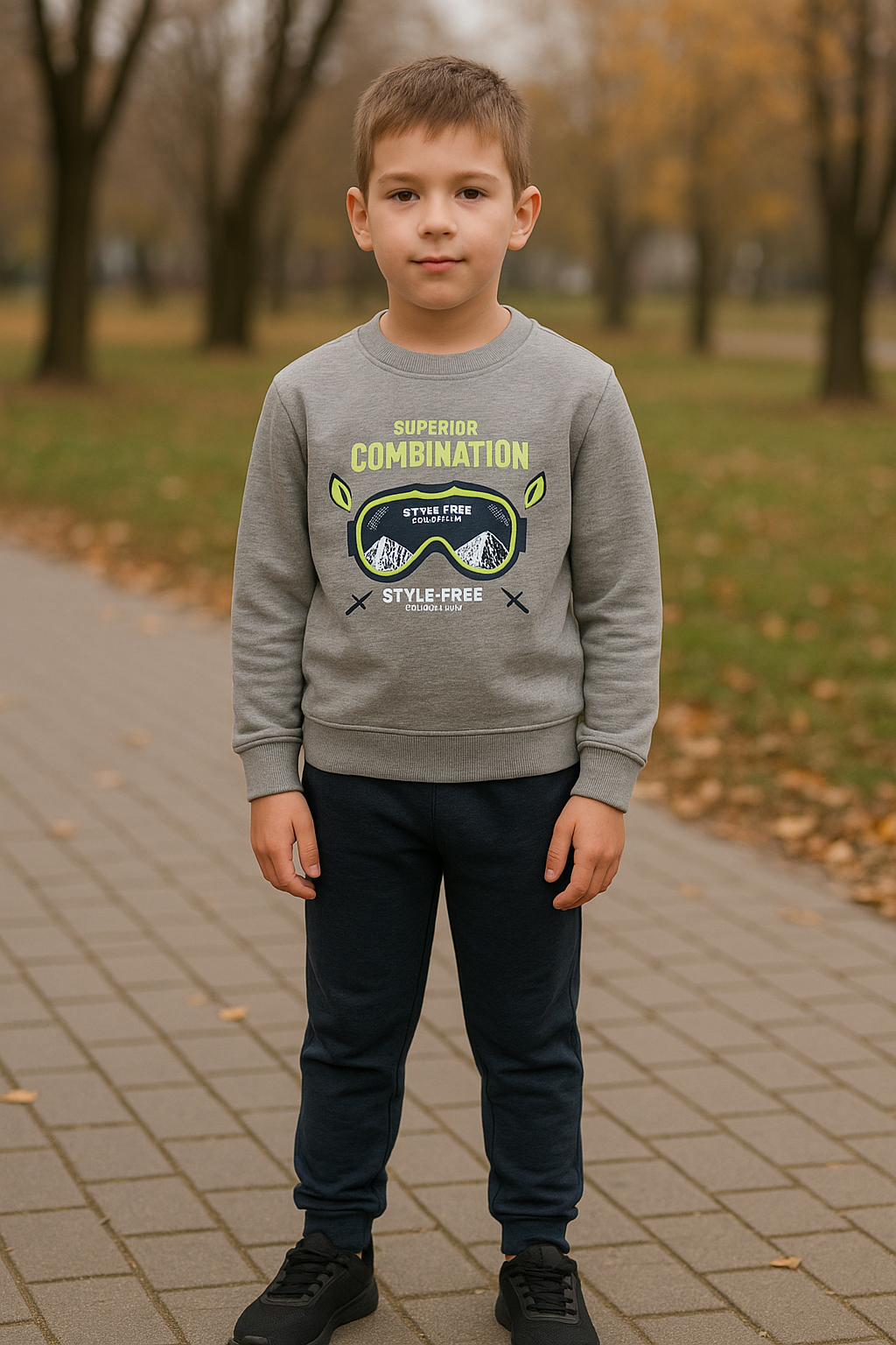 tuta bambino ragazzo COMBINATION FELPA con maglia girocollo e pantatuta tutto in felpato