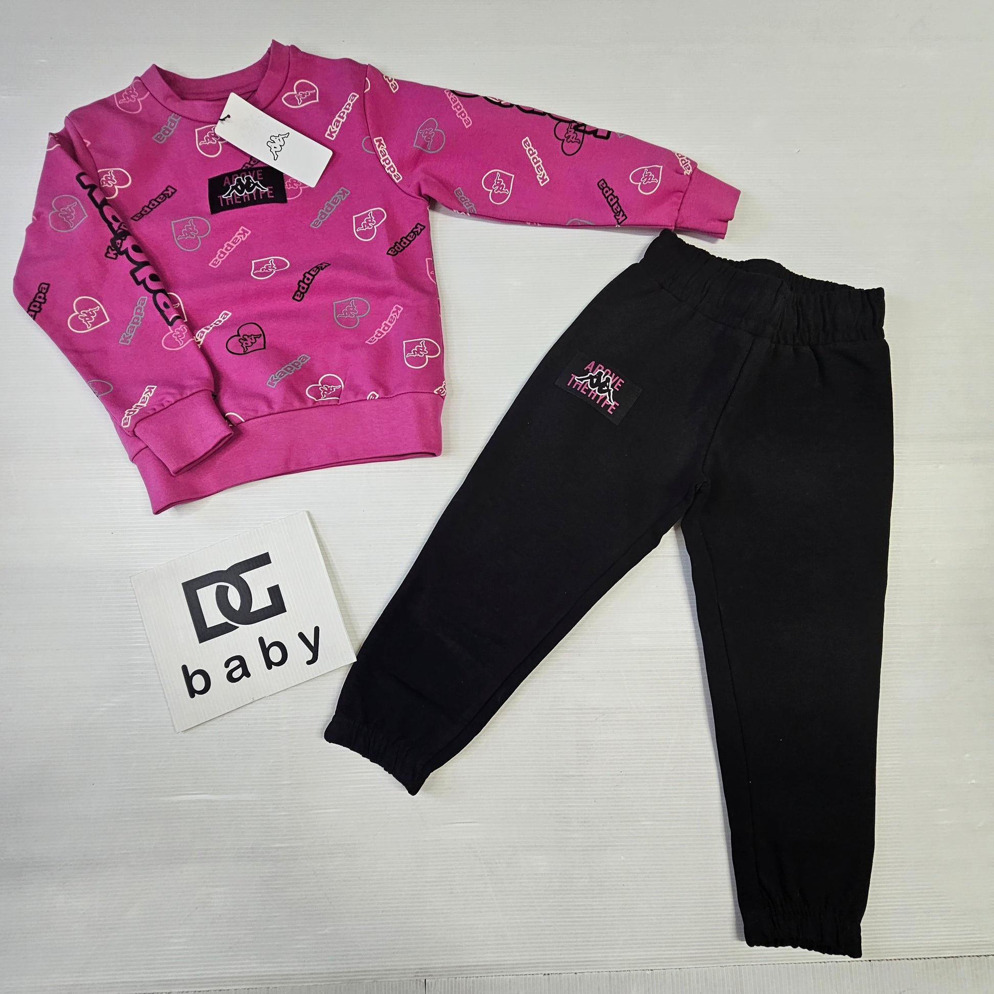 tuta bambina KAPPA SCRITTE CUORI maglia girocollo e pantatuta tutto in felpa di cotone felpato