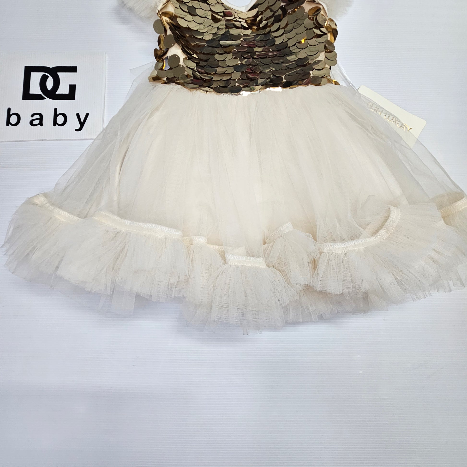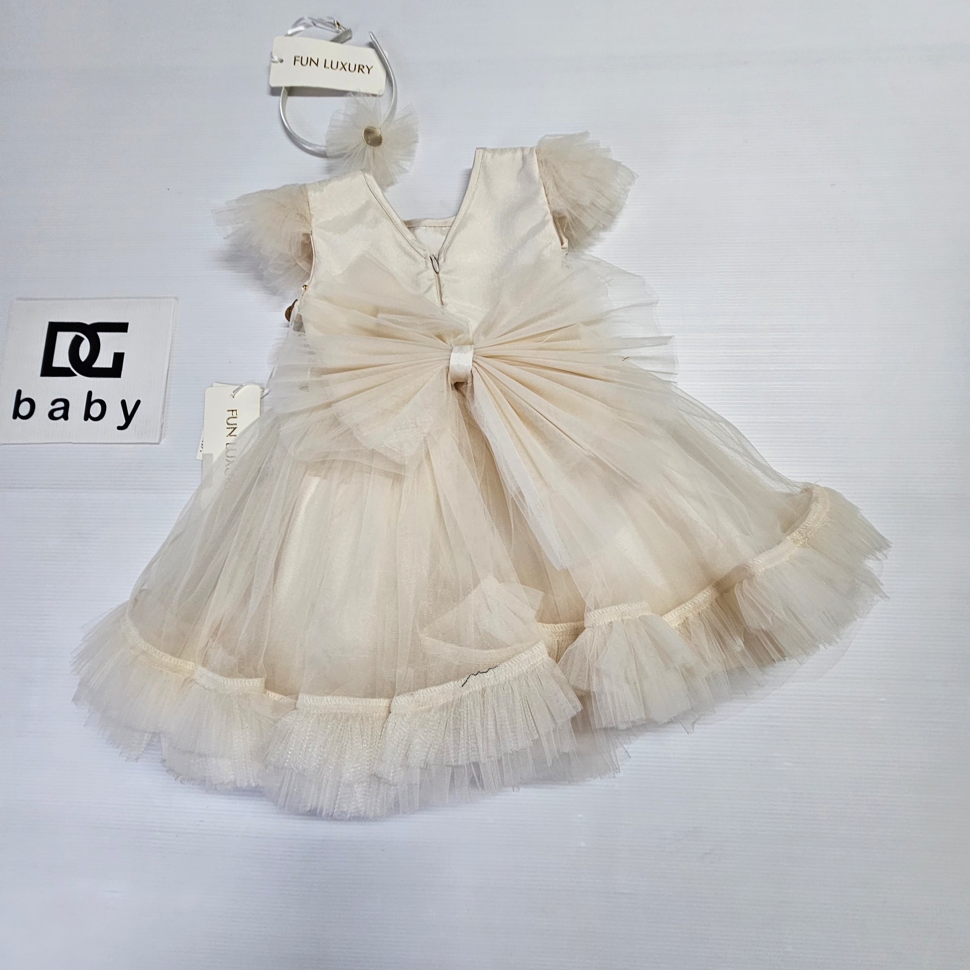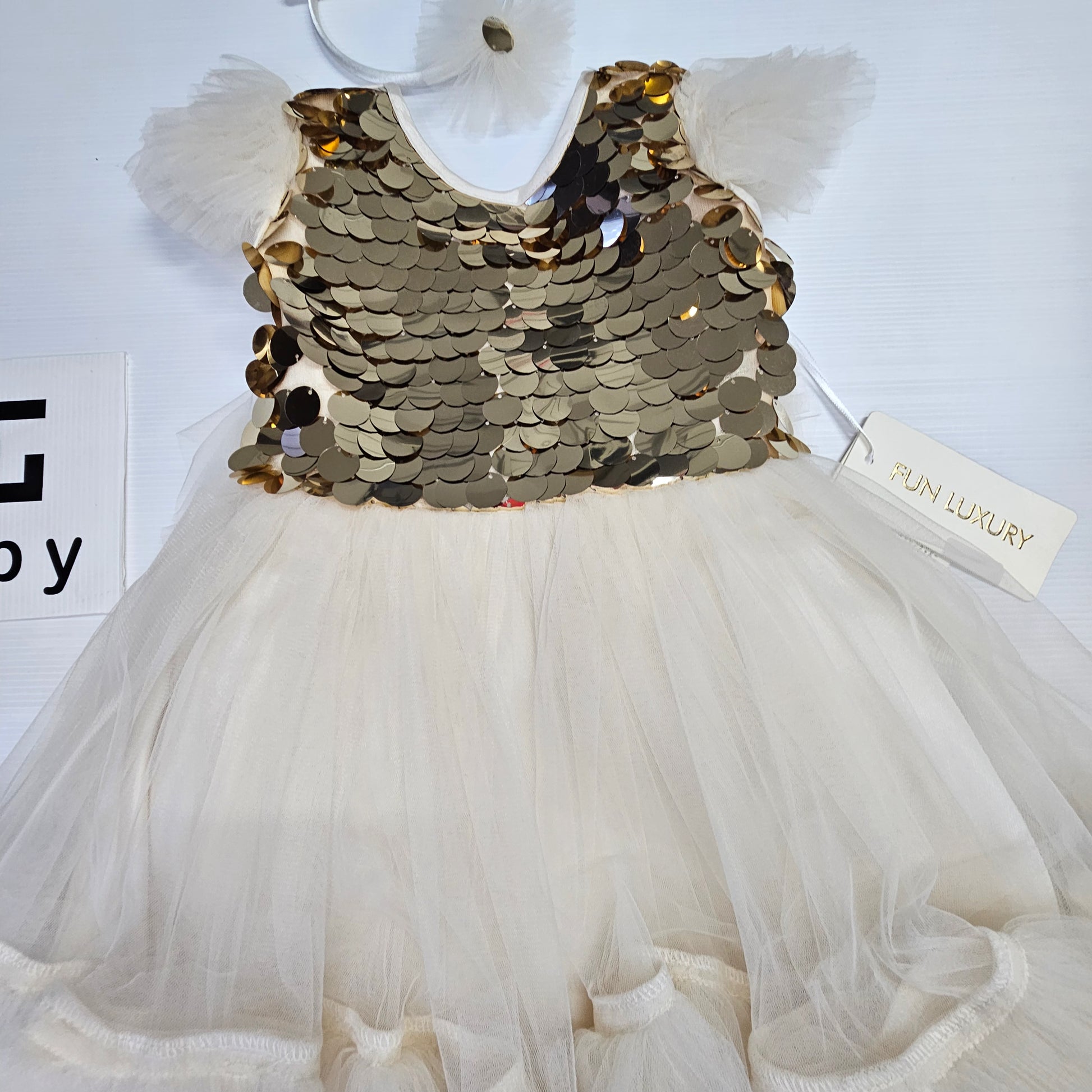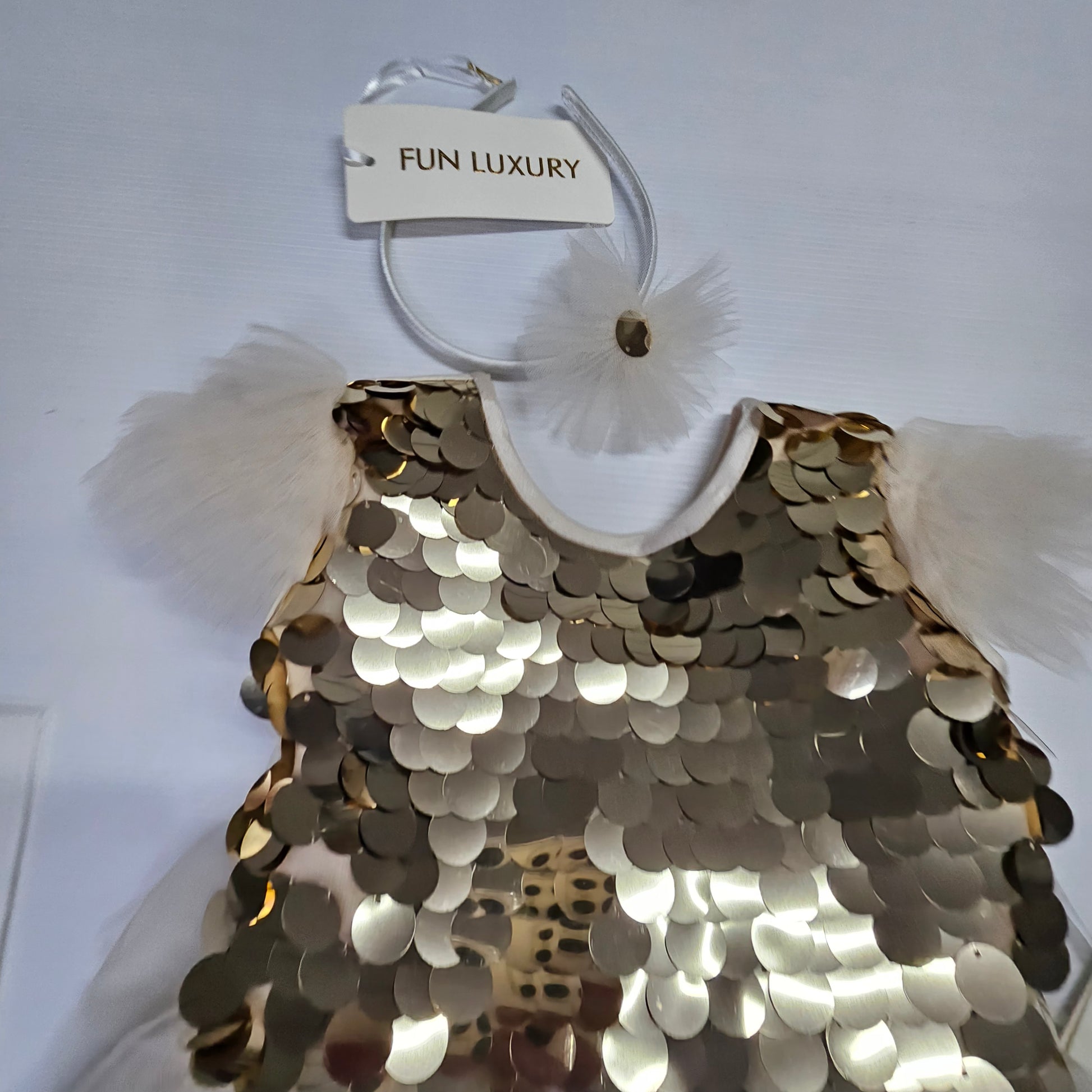 vestitino bambina FUN LUXURY con pailettes e fiocco dietro e con fermacapelli abbinato