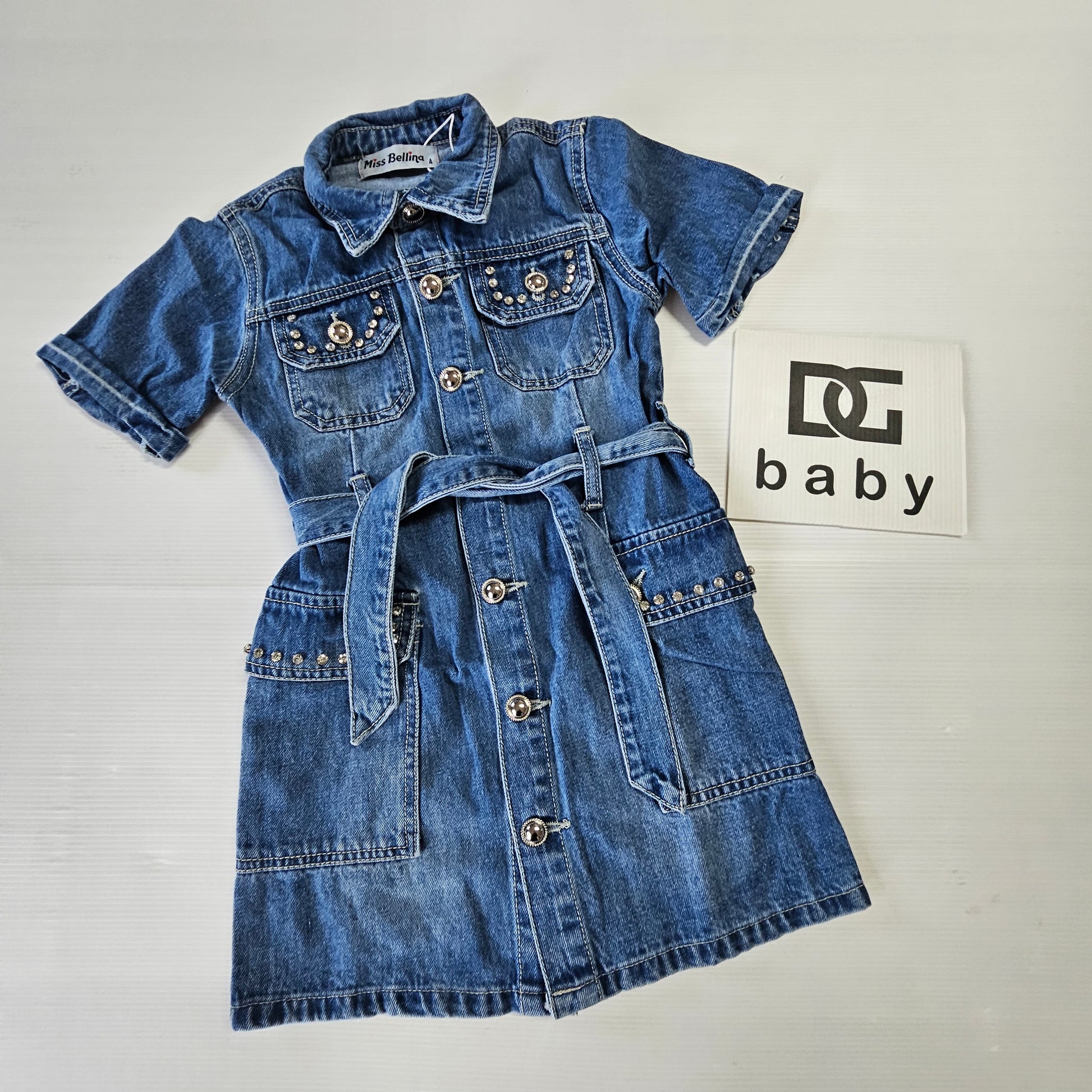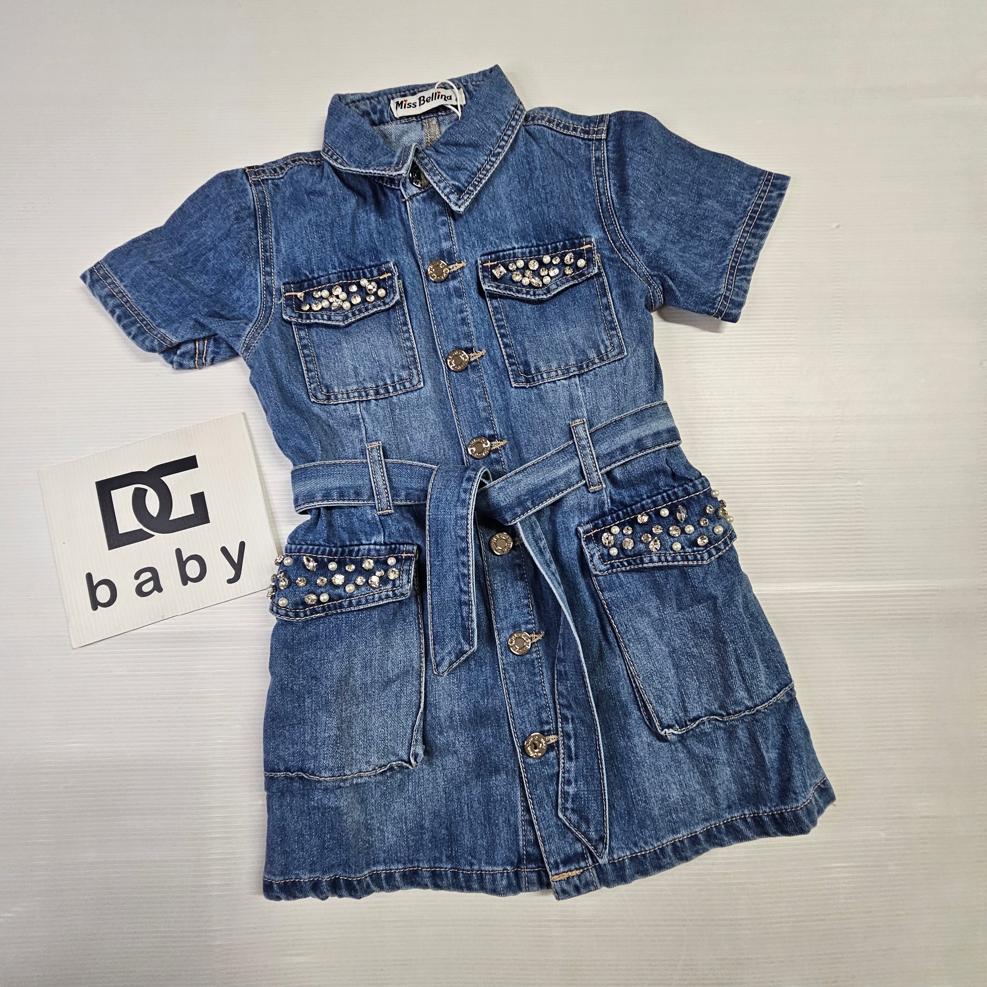 vestitino bambina ragazza tutto in JEANS con cintura in vita e strass